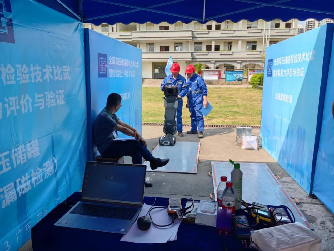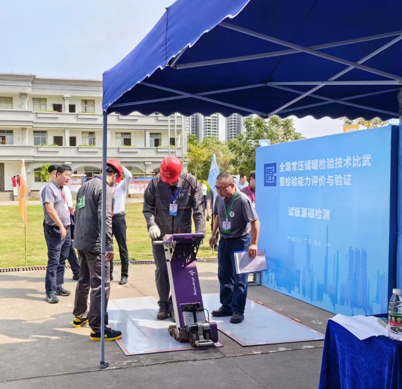 我公司在此活動中專門提供了2套儲罐底闆漏磁檢測系統、2套底闆漏磁試闆,并派出3名技術人(rén)員提前達到茂名,做賽前技術指導和培訓,爲比賽提供全程技術保障。