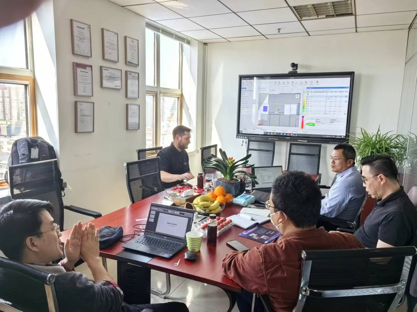 在交流過程中,外賓分(fēn)享了銀翼新漏磁産品的創新技術和技術特點。通過案例分(fēn)析和實際操作(zuò)演示,向我公司的技術人(rén)員傳授了寶貴的經驗和技巧。同時,公司的團隊也積極提出了自(zì)己在設備中遇到的問題和挑戰,與漏磁技術專家Andrew先生(shēng)共同探討(tǎo)解決方案。另外,Andrew先生(shēng)看(kàn)過我們公司研發的真空箱演示後,對真空箱的性能非常滿意并提出可(kě)否訂購10套,出口到英國。雙方就(jiù)市場趨勢、産品研發、質量管理(lǐ)等方面也進行了廣泛而深入的討(tǎo)論。